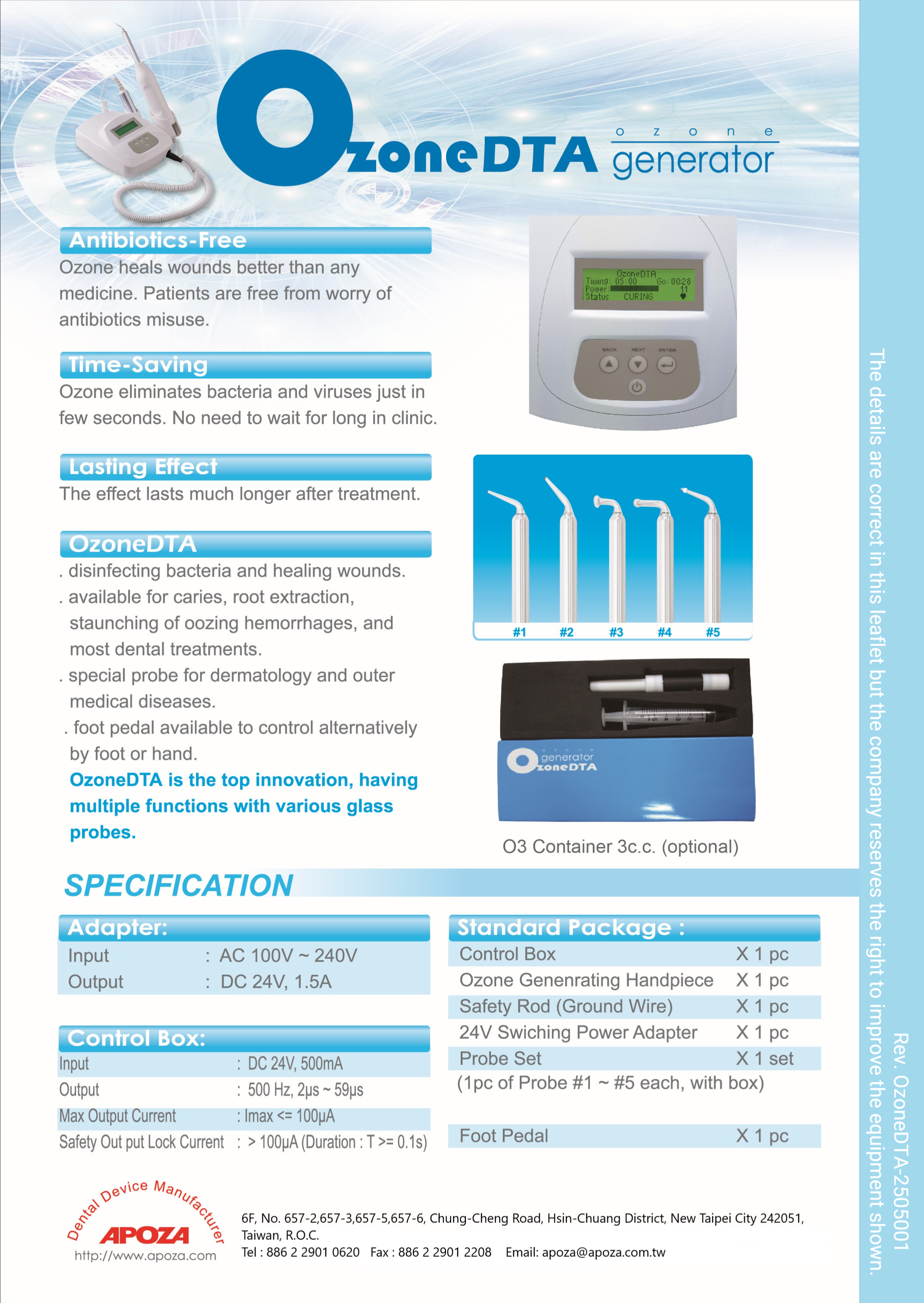 2.OzoneDTA has European CE Certificate and US FDA Device Listing.